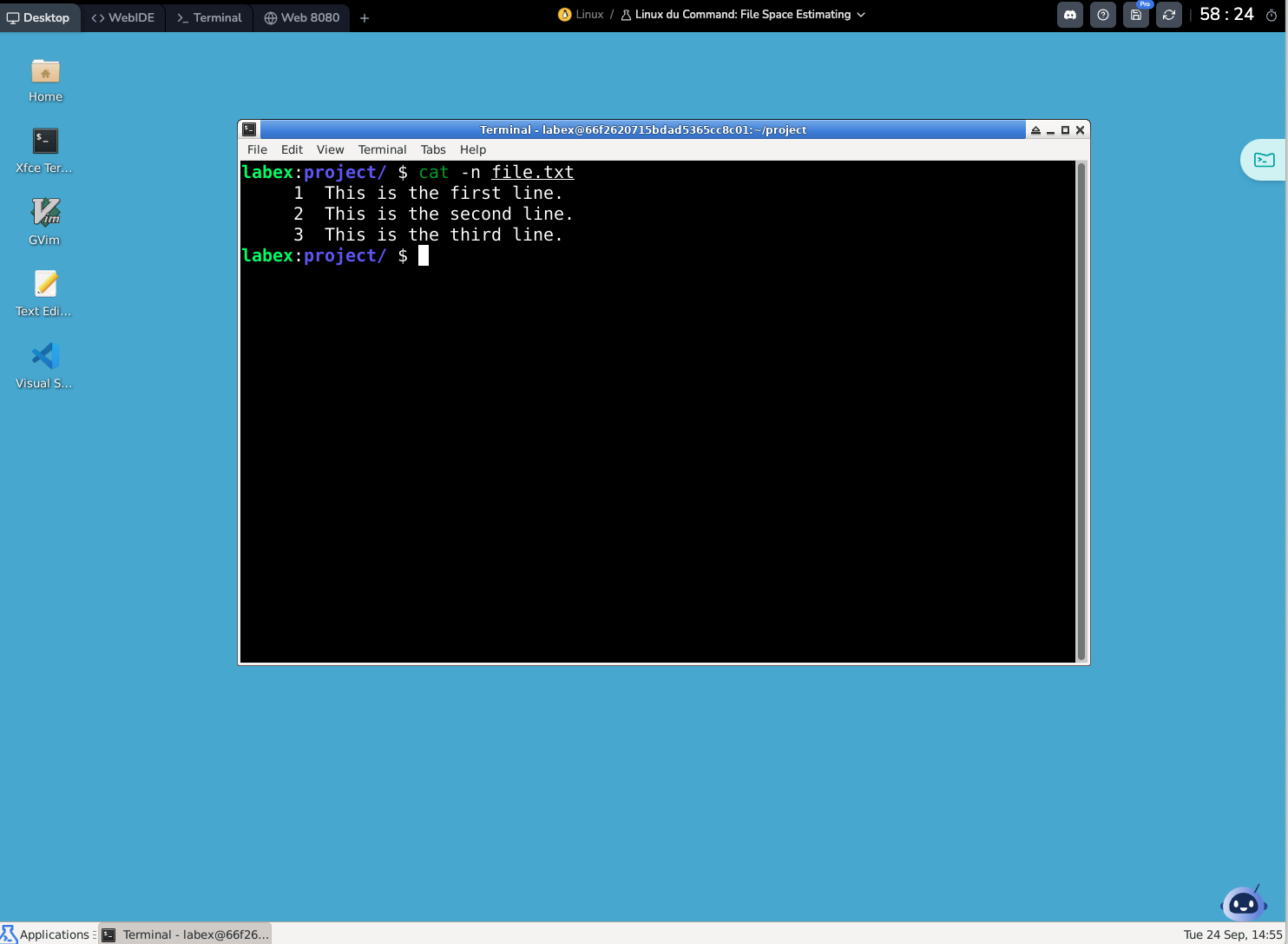 This will display the contents of the file.txt file with line numbers. The output will look similar to this: