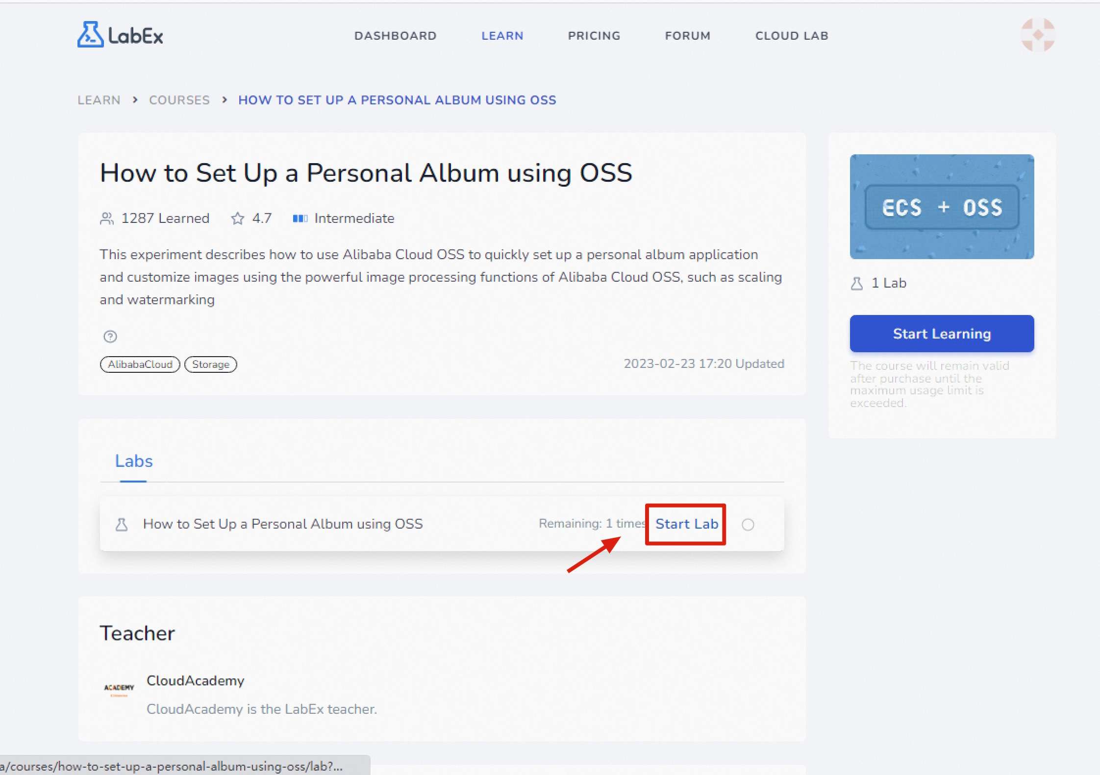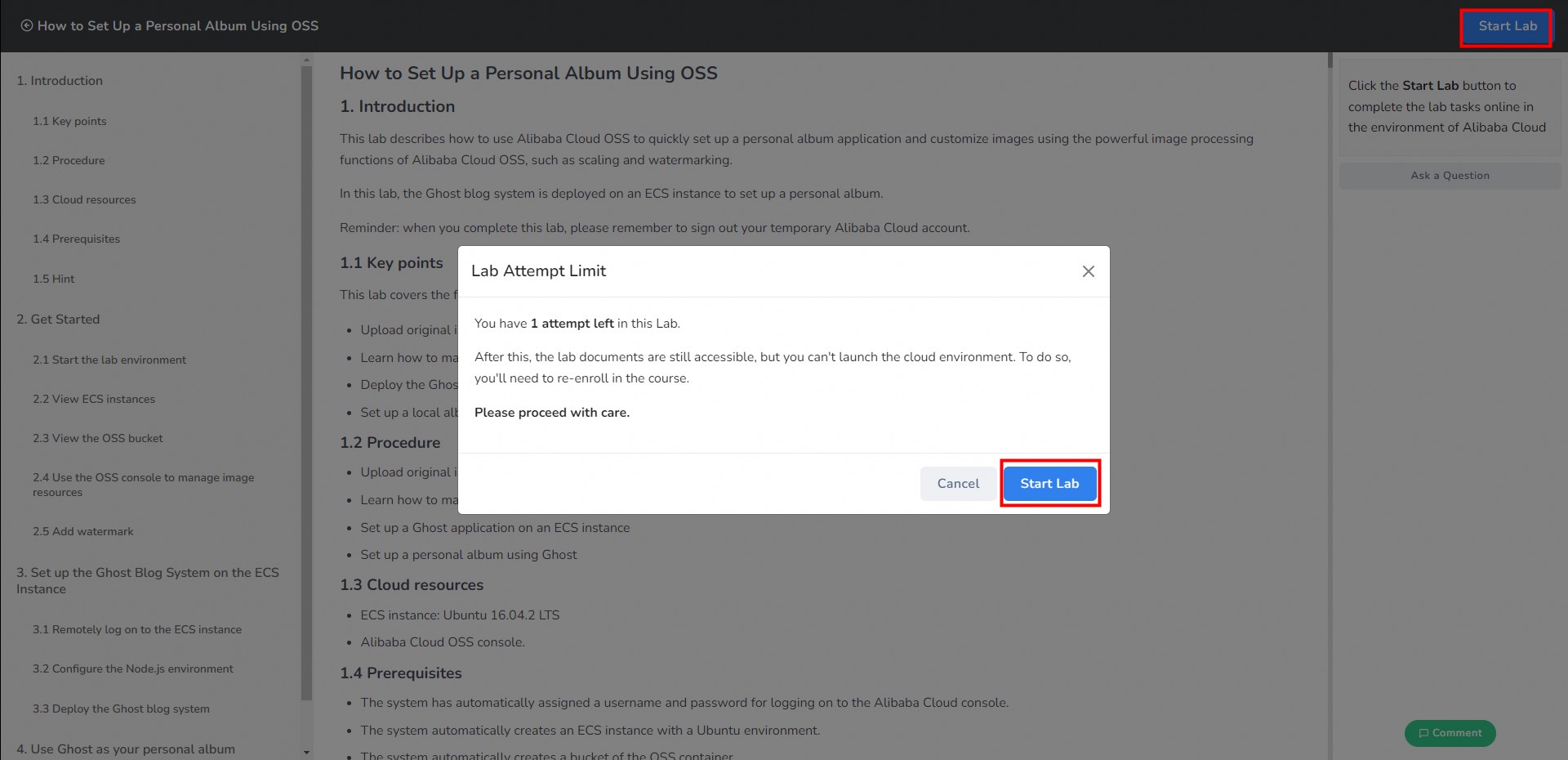 Click Start Lab to enter the experiment document.