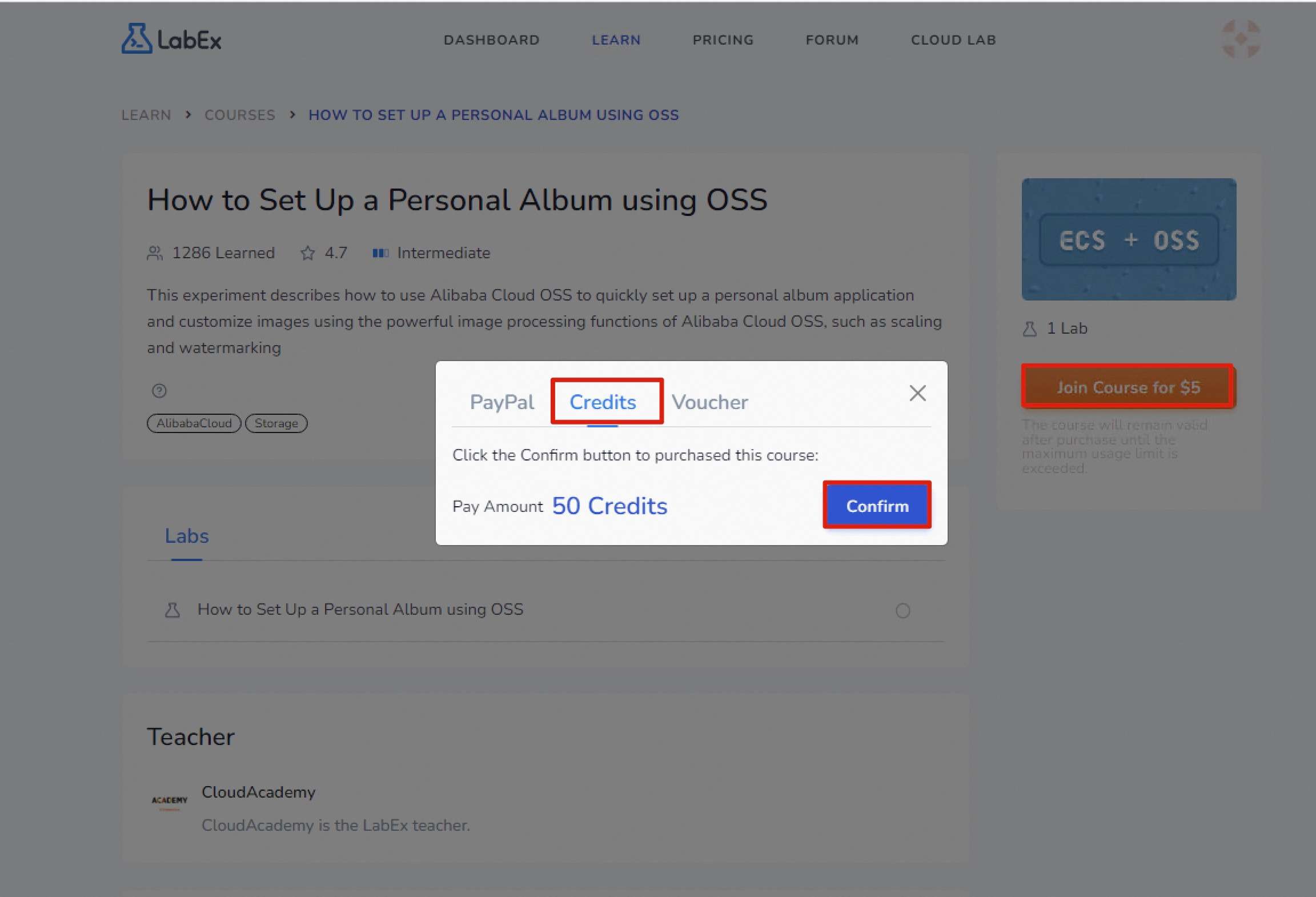 Click on CLOUD LAB, select the experiment you want to purchase and enter the details.