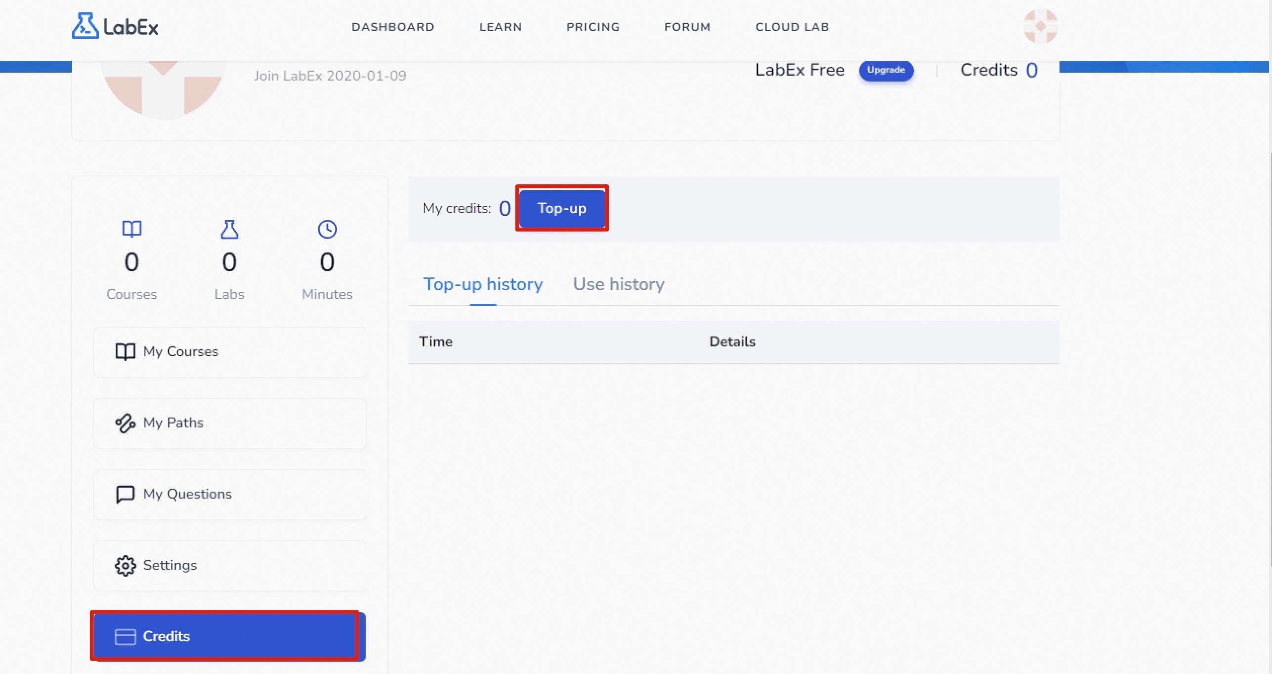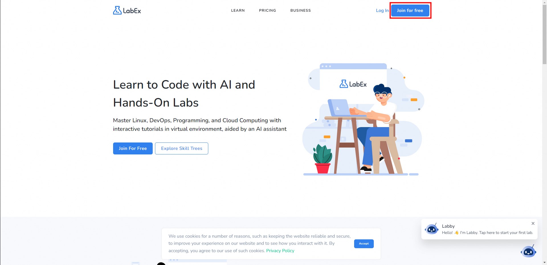After entering the labex URL https://labex.io, click Join for free.